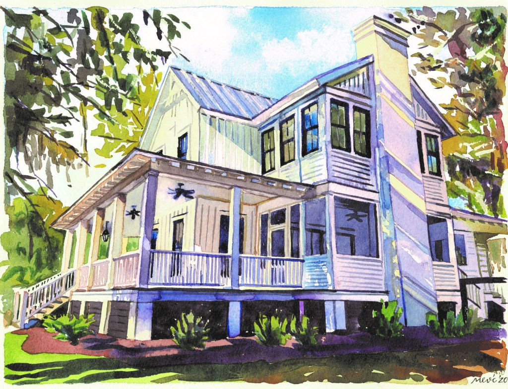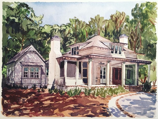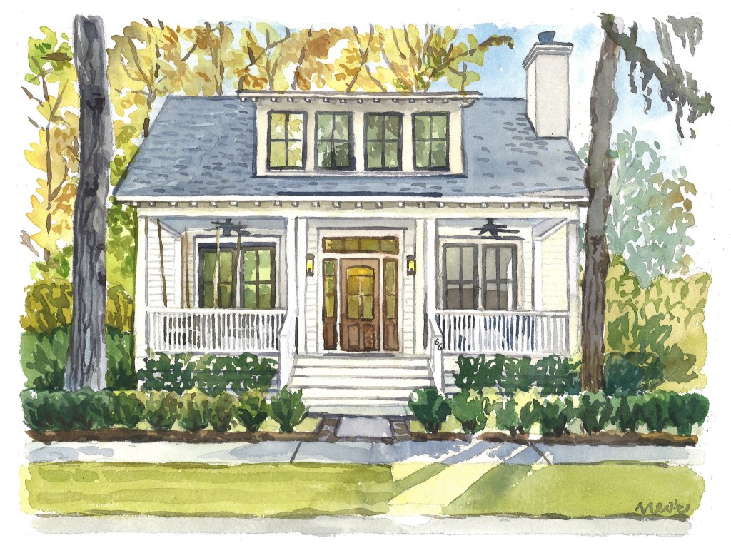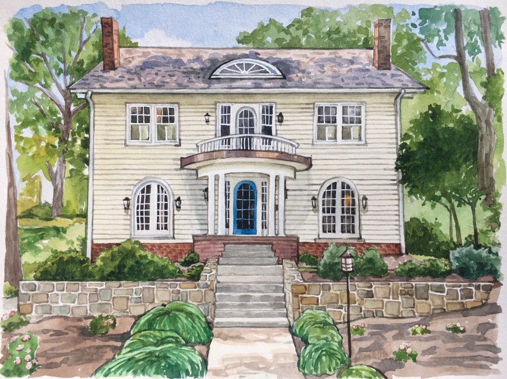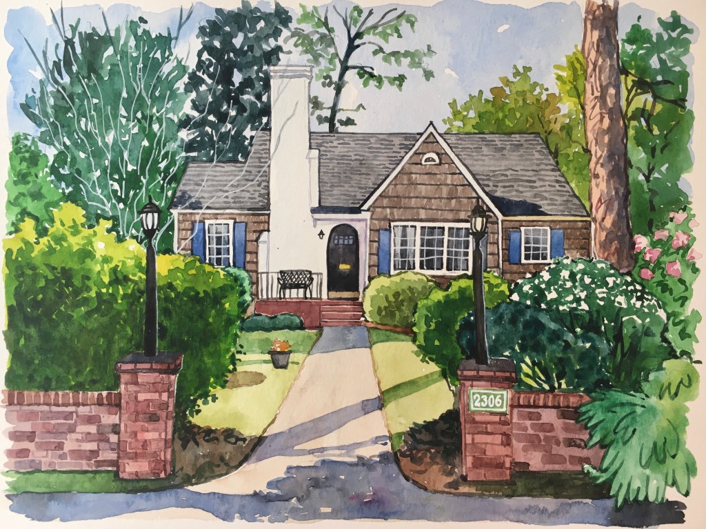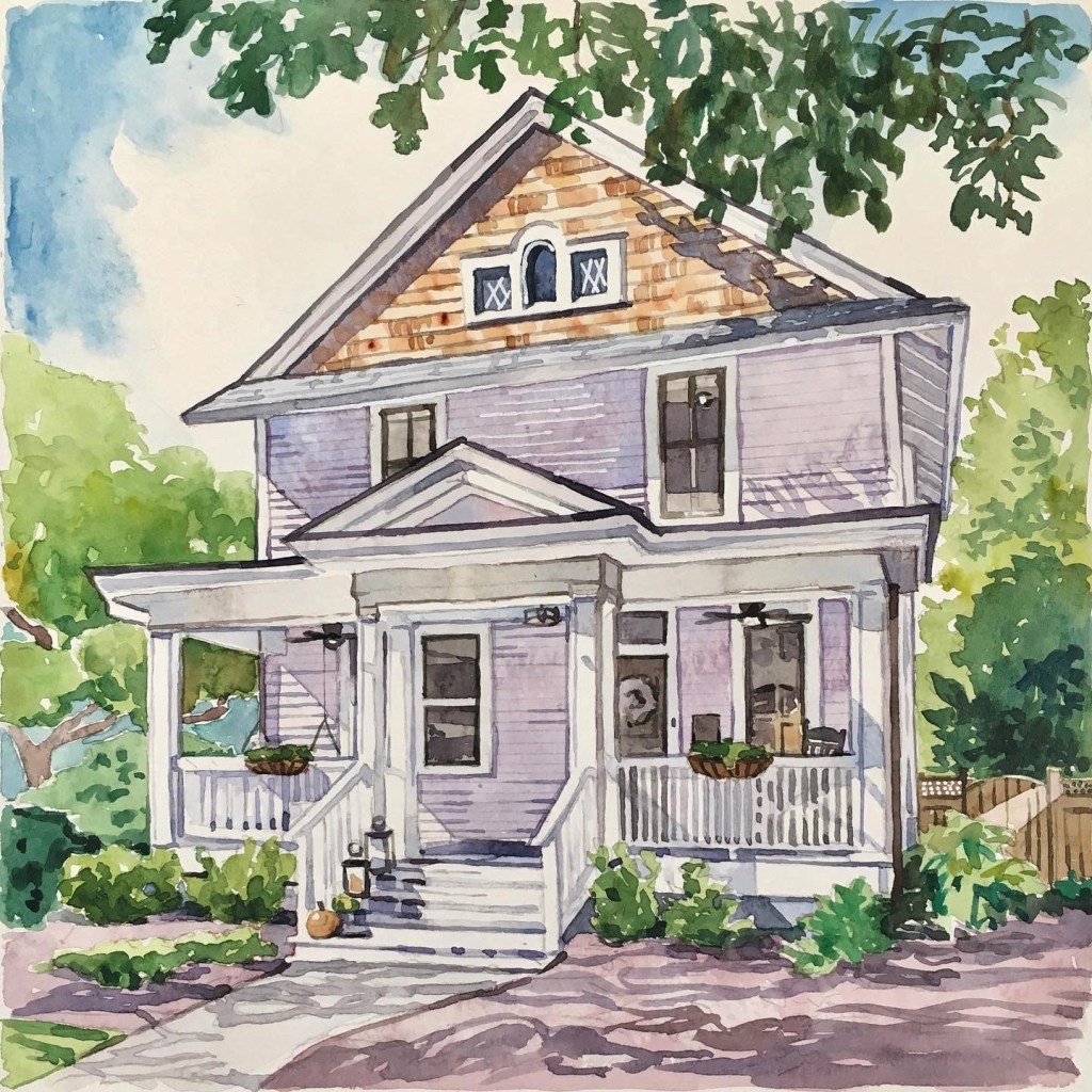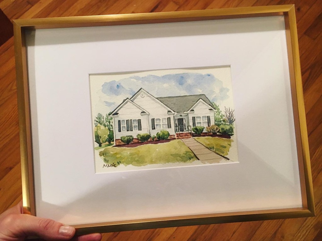 *Mini portraits, such as the one pictured in circular format and those being held, are less detailed. You may choose to focus on a particular feature of the house rather than try to capture the whole house and its setting. Realtors: ask me about bulk discounts – perfect for closing gifts!