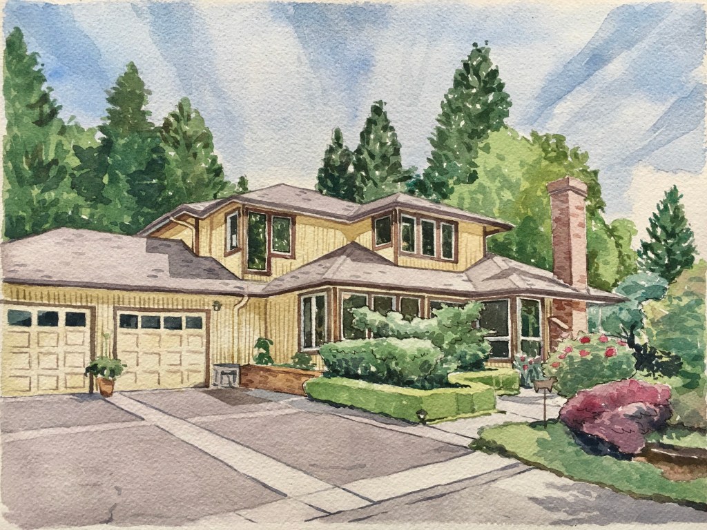 I paint each home by hand on 300 gsm archival cold-press watercolor paper.