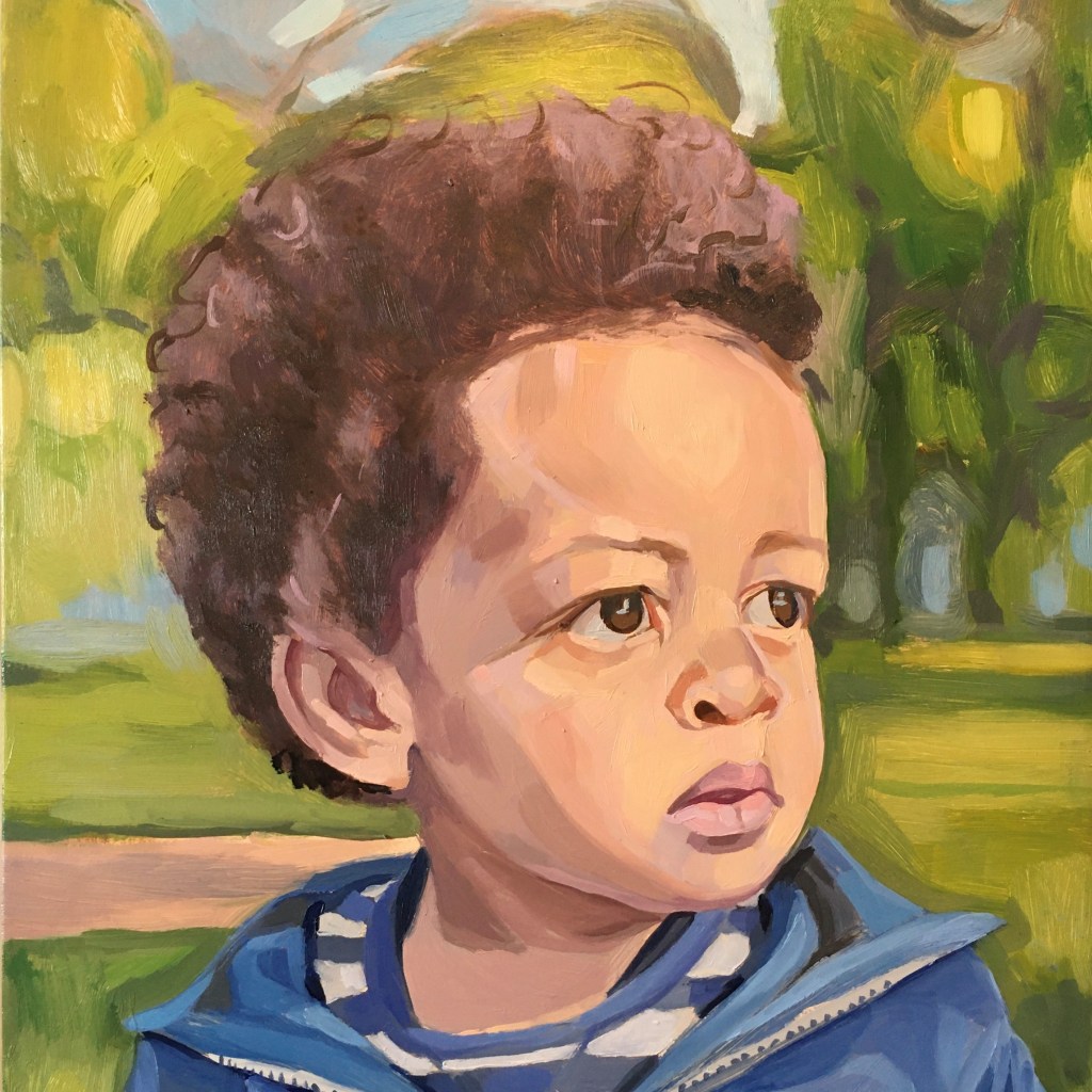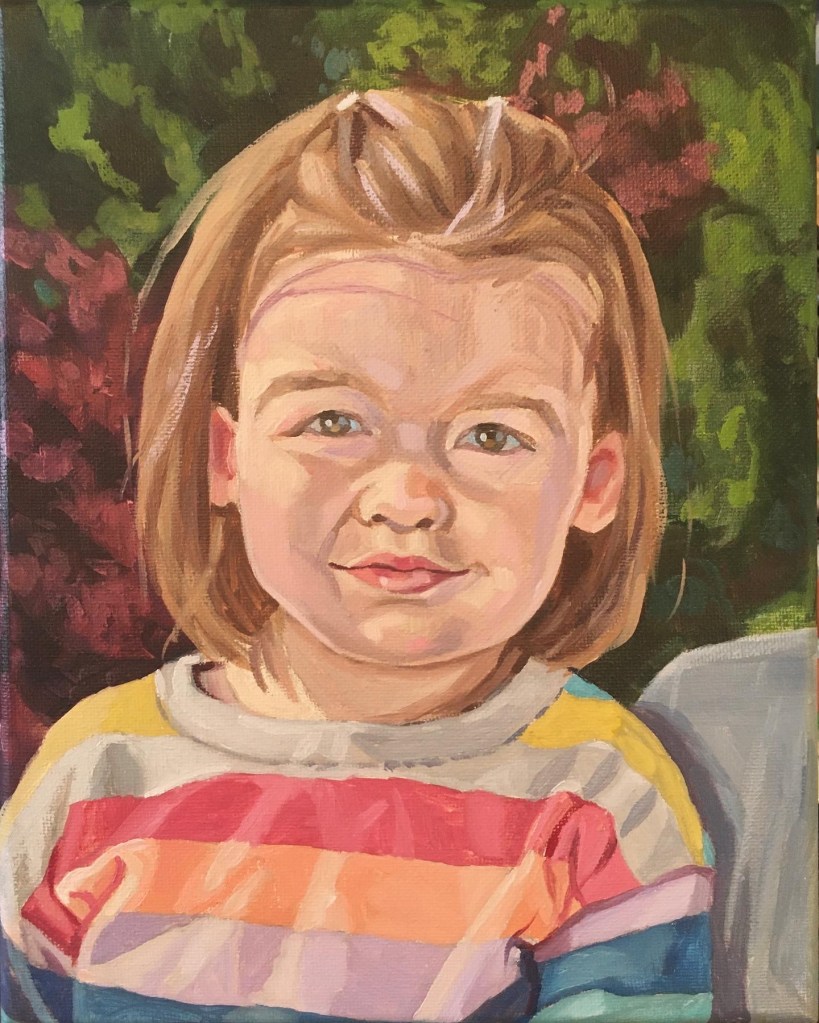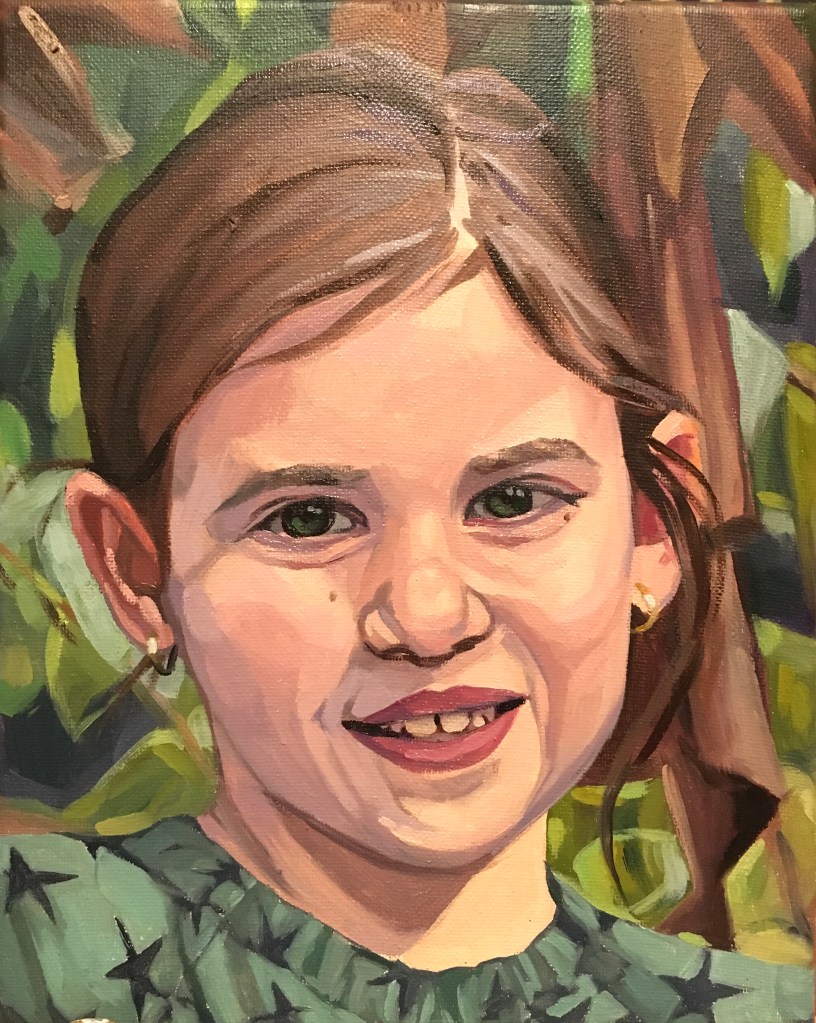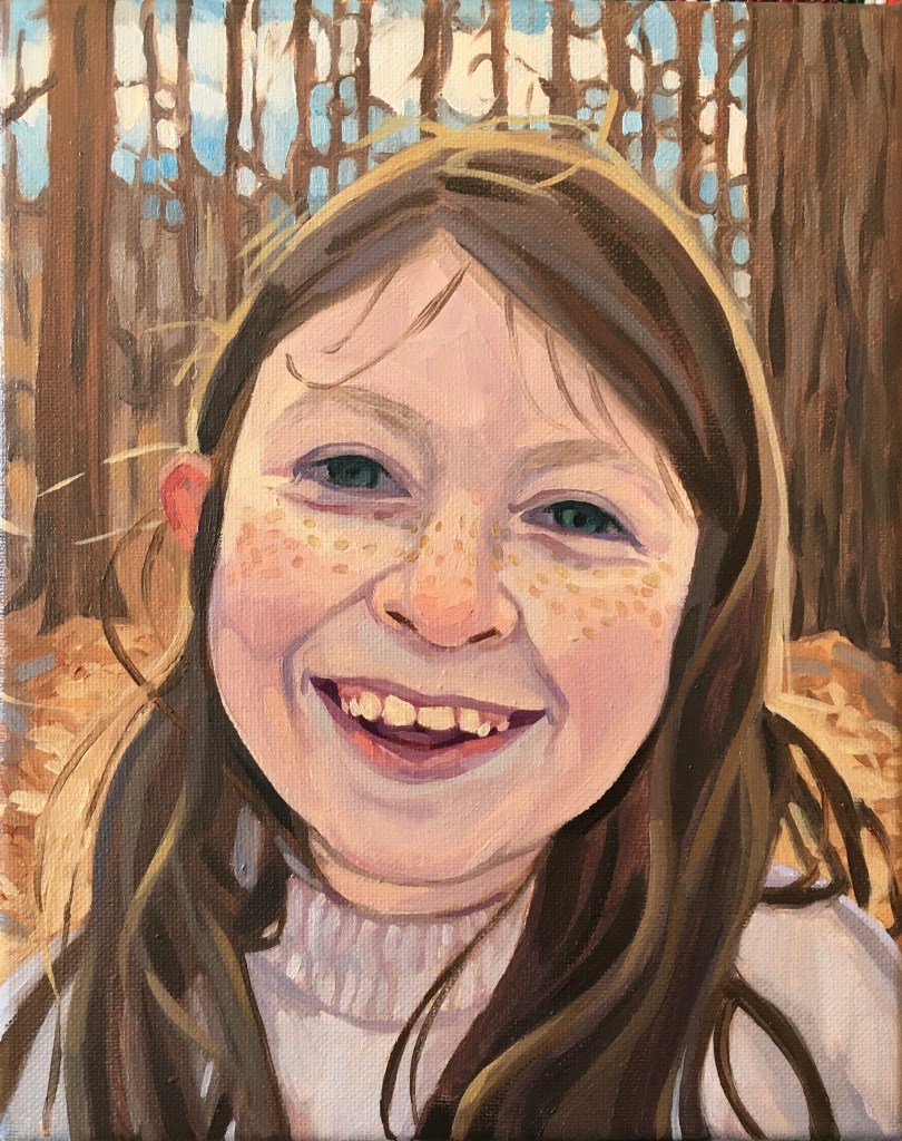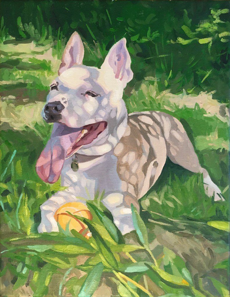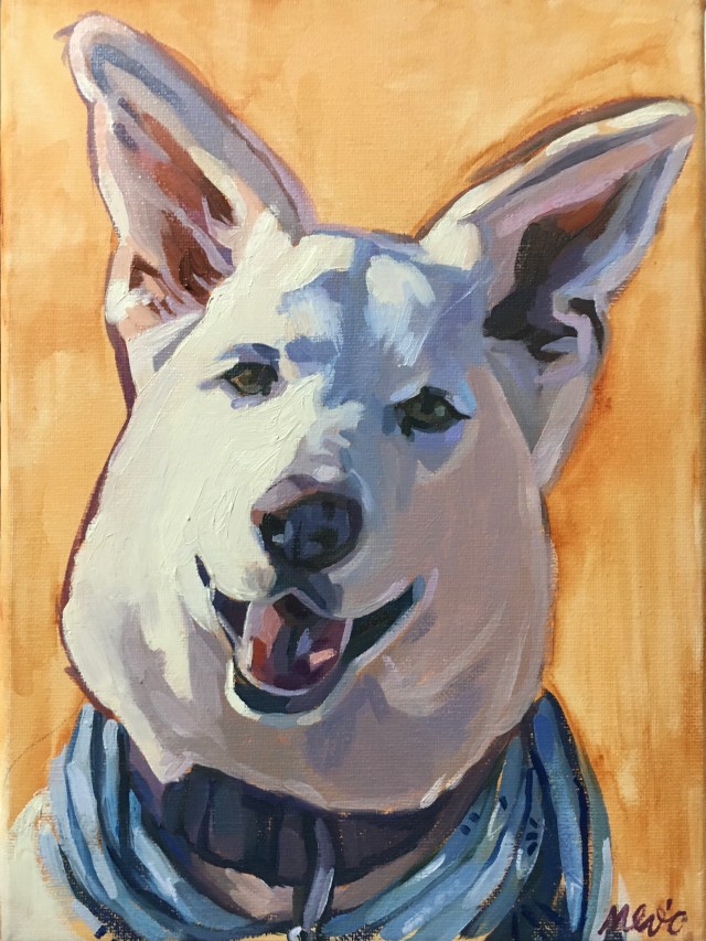 The best photo references for my colorful oil portraits are crisp, vibrant, and preferably with a light source that casts interesting shadow shapes. Portraits start at $175 for a 5×7″ canvas. Price is for a single figure–human or pet!
